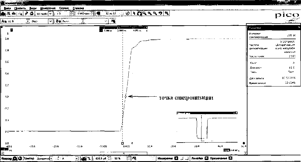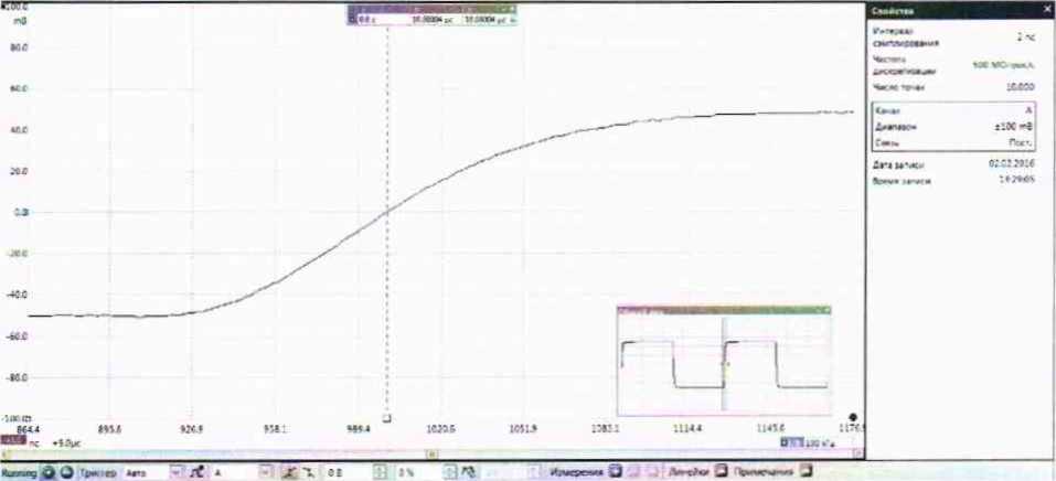 Рисунок 4 - Окно программы осциллографов при измерении переходной характеристики. Окно «Свойства» - справа.