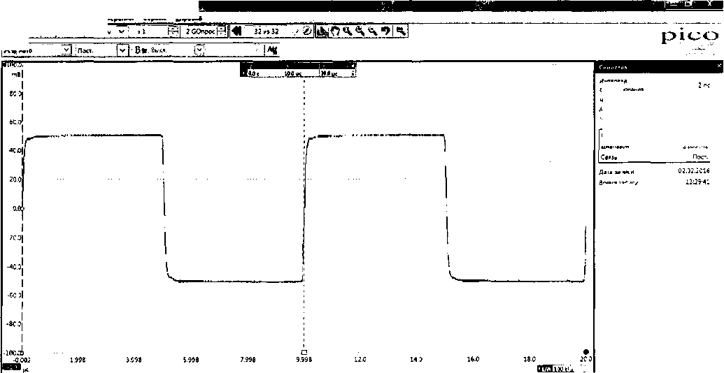 4. Установкой коэффициента развертки добиться минимального интервала сэмплирования, число точек - не менее 2500. Данная информация отображается в окне программы «Свойства».