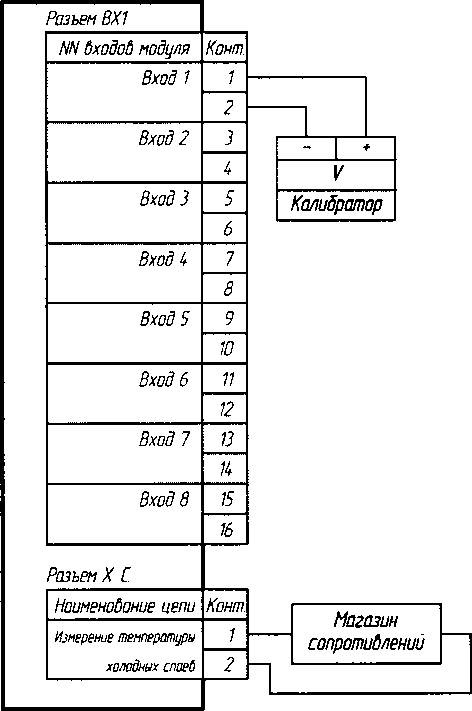2.4. При проверке погрешности ИК контроллера, на вход которых поступают сигналы от термопар (рис. 6.3), в качестве эталона для задания входного сигнала используют калибратор напряжения, имеющий в