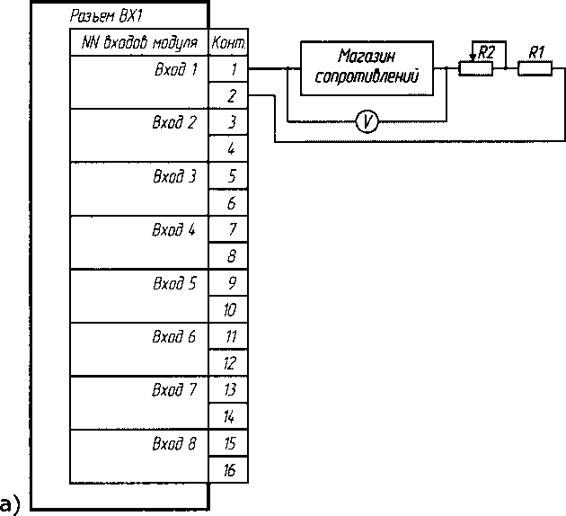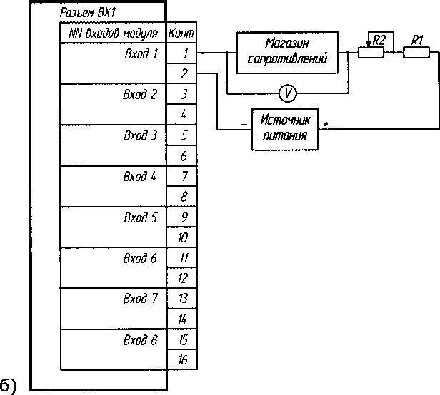 Подключение ИК конкретных исполнений модулей контроллера осуществляют в соответствии с эксплуатационной документацией. Примеры схем проверки приведены на рис. 6.2 и 6.3.