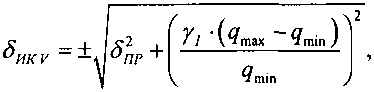 7.4.5.2 Относительная погрешность СИКГ при измерении расхода в рабочих условиях определяется по формуле