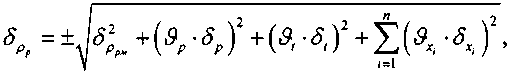 7.4.5.4 Относительная погрешность определения плотности газа при рабочих условиях определяется по формуле