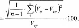 5.3.9 Используя полученное значение Vcp, определяют значение систематической составляющей основной относительной погрешности дозаторов 8п, (%) для каждого проверяемого канала по формуле