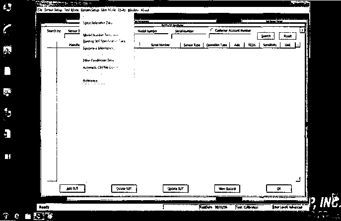 - в меню «SUT Information» выбрать испытуемый акселерометр, используя информацию по производителю и заводскому номеру;