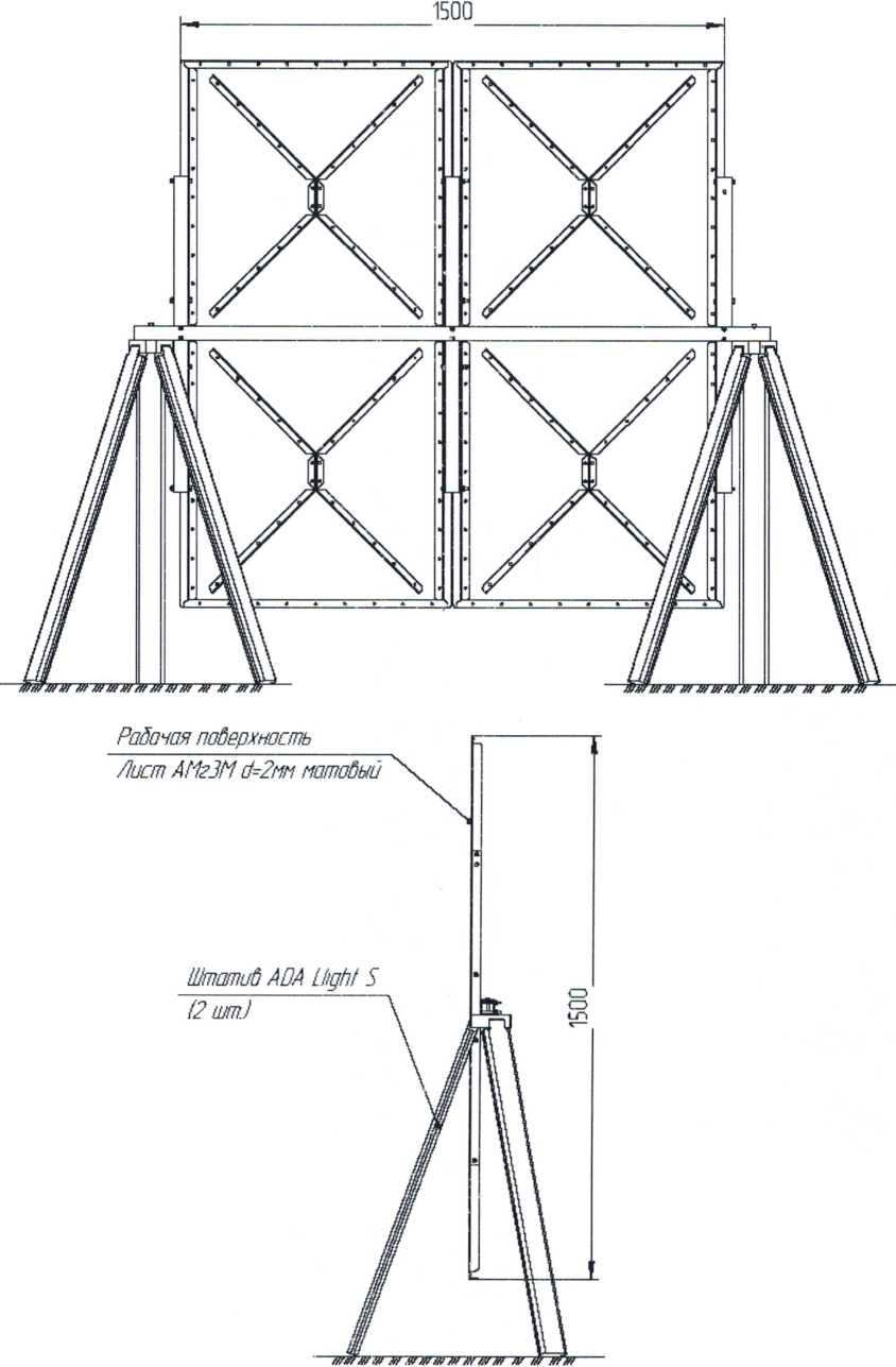 Примечание: в случае если технические характеристики тахеометра не позволяют проводить измерения расстояний на отражающую плёнку на данное и (или) большее расстояние, установить на один из штативов, поддерживающих щит, отражательную призму и проводить измерения расстояний на призму.
