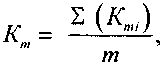 - определяют среднее отклонение ЛКт коэффициента преобразования динамического давления трубки напорной на каждой измеряемой скорости воздушного потока Kmi от среднего значения коэффициента преобразования Кт по формуле: