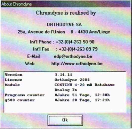 По запросу в меню Info/About Chromdyne на экране должно отображаться идентификационное наименование и версия ПО (рис. 1)