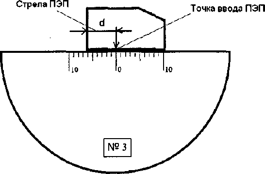 - метка «0» на мере №3, перенесенная на боковую поверхность ПЭП, указывает на точку ввода ПЭП. Стрела ПЭП - расстояние от точки ввода до торца ПЭП (рисунок 5).