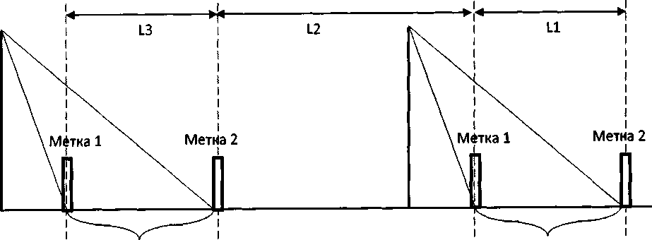 7.4.3.2 Провести измерение расстояния Li от номера на метке 1 до пластины метки 2 дальномером Lrj.