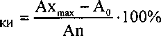 Ап - верхняя граница диапазона измерений поверяемого измерительного канала; Ахмах - значение измеренного параметра с максимальным отклонением от заданного значения; Ао - значение заданного сигнала эталона.