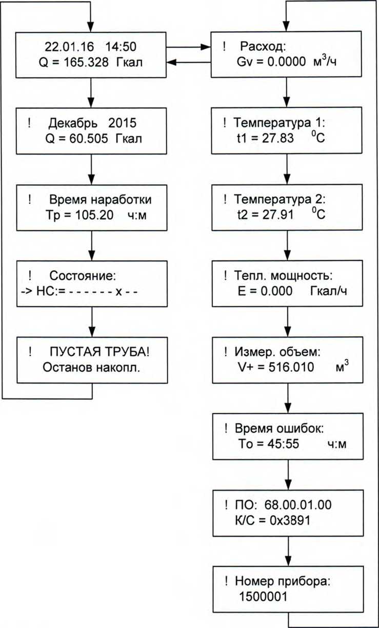 Рис. А2. Состав и структура меню теплосчетчика.