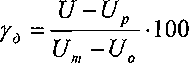 5.5.2. Вариацию выходного сигнала уг в % нормирующего значения (п.5.4.6) вычисляют по приведенным ниже формулам.