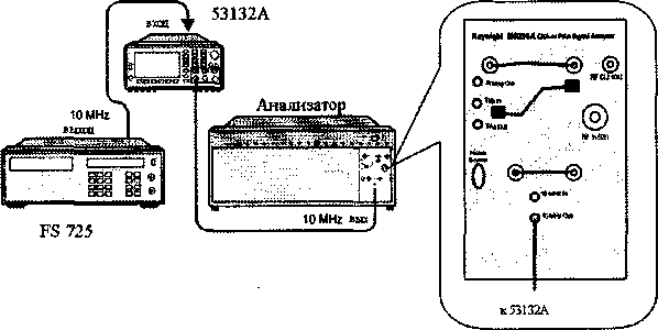 По истечении времени самопрогрева анализатора, измерить частоту на выходе «10 МГц» анализатора.