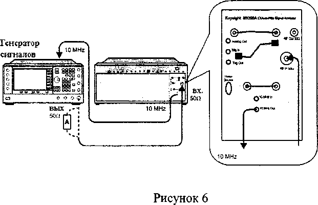 7.10.1 Для определения неравномерности АЧХ синусоидального сигнала относительно частоты 50 МГц подключить измеритель уровня мощности N1914A и измерительный преобразователь к выходу следящего генератора анализатора.