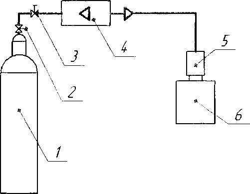 1 - баллон с ПГС; 2 - вентиль; 3 - вентиль тонкой регулировки;