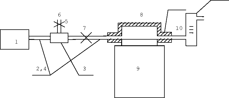1 - генератор ПГС; 2,4,6,10 - соединительные трубки (желательно из фторопласта); 3 - тройник; 5,7 - зажимы; 8 - адаптер; 9 - датчик сигнализатора; 11 - измеритель расхода