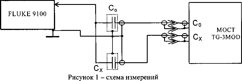 8.2.3 В качестве эталонной емкости Со включите меру CA6221D-30-10 с включенным значением емкости 30 пФ и tg8=5-10’5, а в качестве измеряемой емкости Сх - меру МЕ-01 с номиналом 1000 пФ.