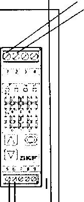 Подать питание 24В (пост.) на дисплейный модуль и трансмиттер. К трансмиттеру подключить вибропреобразователь (СМРТ2310, СМРТ2310Т, СМРТ2323 или СМРТ2323Т), входящий в комплект поставки. Между клеймами трансмиттера № 2 и № 3 подключить резистор номинальным сопротивлением 100-120 Ом. Для преобразователей модификаций СМРТ2310Т и СМРТ2323Т сигнальный провод температуры к трансмиттеру не подключать. Закрепить вибропреобразователь на эталонном виброустановке.