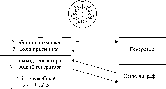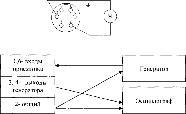 6.4.3 Для дефектоскопа ВЕКТОР-Скан амплитуду определить осциллографом с помощью щупа, подключенного к контактам 1 или 3 и 4 разъема подключения преобразователя (Рисунок 2).
