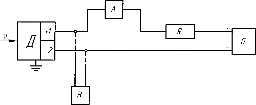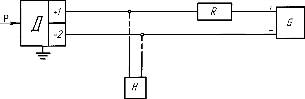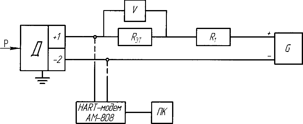 G - источник питания постоянного тока (например, один из указанных в п. 2.1, таблица 2, если иное не указано в технической документации); R - нагрузочное сопротивление, (например, резистор МЛТ или магазин сопротивлений, указанный в таблице 2 (п. 2.1); значение сопротивления - в соответствии с условиями поверки (п. 4.1); Н - портативный компьютер или другое цифровое устройство, поддерживающее коммуникационный протокол;