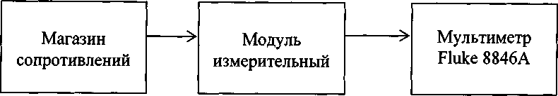 - сформировать, при помощи магазина сопротивления на входе измерительного модуля сопротивление постоянному току величиной 18,52 Ом, соответствующее температуре минус 200 °C;