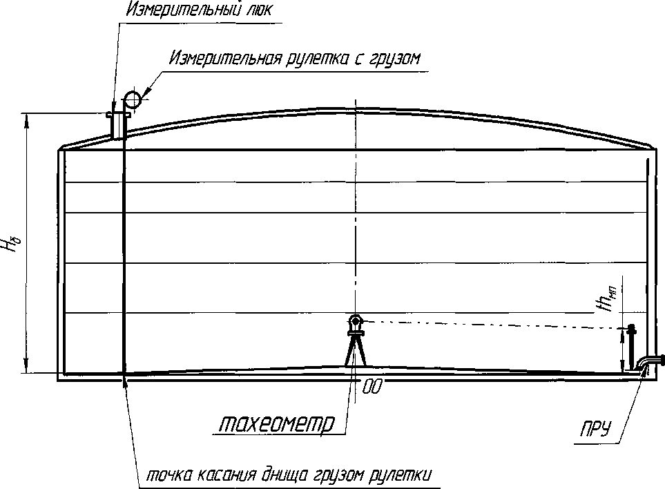 3.10 базовая высота резервуара: Расстояние по вертикале от точки касания днища грузом рулетки до верхнего края измерительного люка или до риски направляющей планки измерительного люка (при наличии)