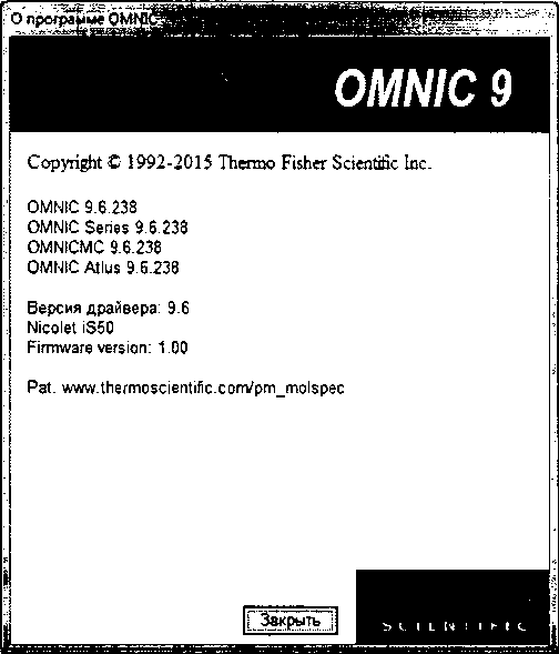 Рис. 1. Окно с идентификационными данными программы OMNIC