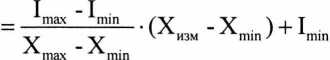 Xmin - минимальное значение измеряемого параметра, соответствующее минимальному значению границы диапазона аналогового сигнала силы постоянного тока (от 4 до 20 мА) (Imin), в абсолютных единицах измерений;