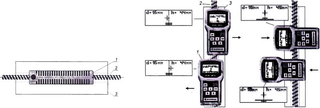 1 - преобразователь/измеритель; 2 - арматурный стержень; 3 - ПН