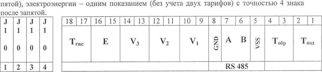 Вход счетчика воды 1 100 л/имп Вход счетчика воды 2 100 л/имп Вход счетчика воды 3 100 л/имп Вход счетчика электроэнергии 1000 имп/кВтч |