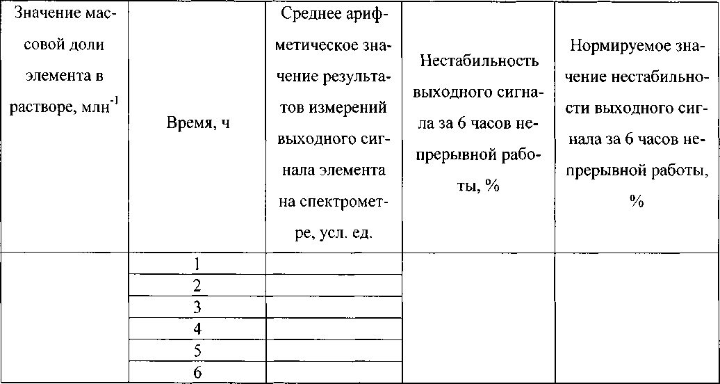 Провести не менее трех измерений выходного сигнала любого элемента в ГСО, указанных в 4.1 и растворов на основе разбавления ГСО, приготовленных по приложению А. Вычислить среднее арифметическое значение выходного сигнала (Z ) по формуле (1). Измерения повторять через каждый час не выключая спектрометра.