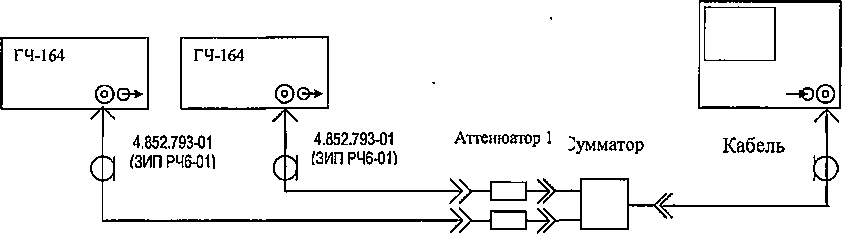 Рисунок 8.6 - Схема электрическая подключения приборов для проверки интермодуляционных искажений в диапазоне от 10 до 100 МГц