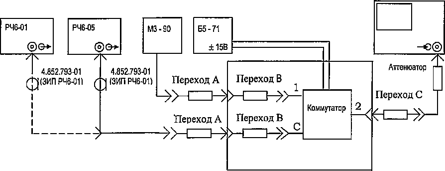 1. Аттенюатор 1: диапазон частот < 3 ГГц; ослабление 10 дБ; КСВН < 1,6; разъемы 7/3(В)-7/3(Р).