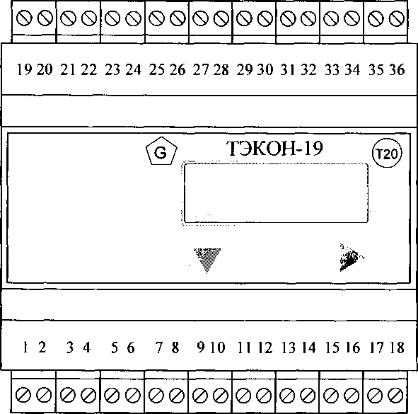 2.2.1.2 Внешний вид со стороны лицевой панели приведен на рисунке 2.1. Нумерация клемм слева направо, вначале в нижнем ряду, затем в верхнем.