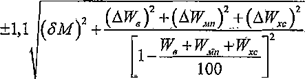 где 8М - относительная погрешность йри измерений' массы брутто нефти, ’%; АИ^ - абсолютная погрешность определения массовой доли воды, %;