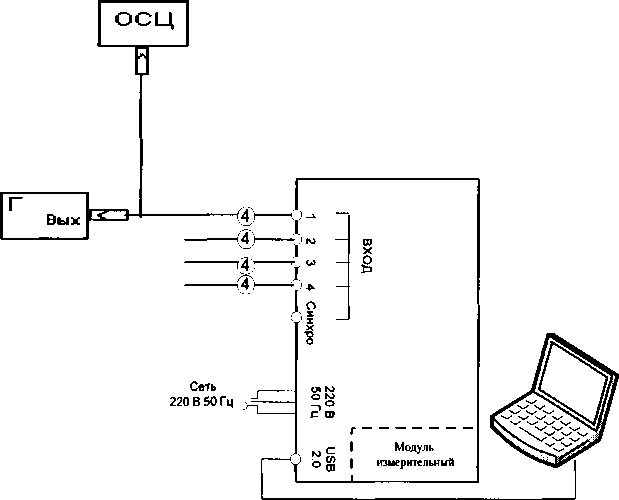 7.5.1.1 Собрать схему согласно рисунка 7.2, предусматривающей подключение выхода генератора непосредственно ко входам измерителя.