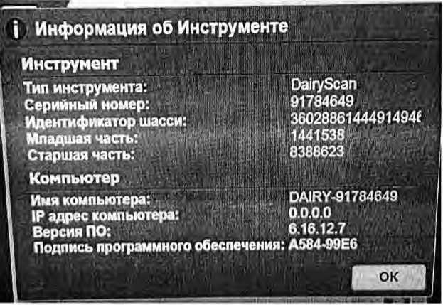 6.3.1.1. Вывод на дисплей окна, в котором указана версия программного обеспечения, осуществляется путем выполнения команд «Настройка»=> «Информация об инструменте»