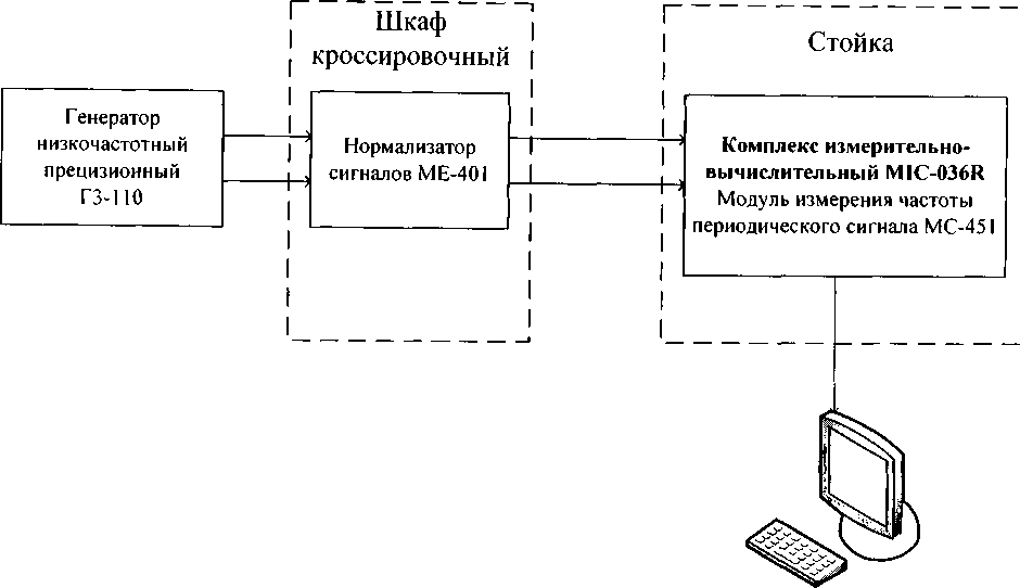 Генератор сигналов низкочастотный прецизионный ГЗ-110: диапазон воспроизведения частоты переменного тока от 0,01 Гц до 2 МГц, пределы допускаемой относительной погрешности воспроизведения частоты воспроизведения напряжения постоянного тока ± 3-10'5 % |