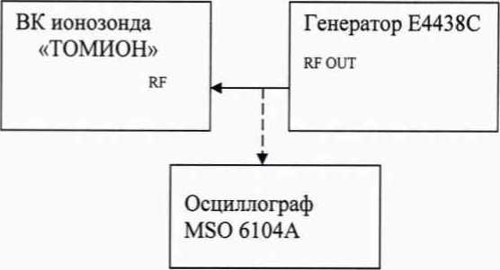 Сформировать на генераторе Е4438С импульсный сигнал с частотой модуляции 1 МГц, задержкой 500 мкс, подать на вход ионозонда «ТОМИОН».