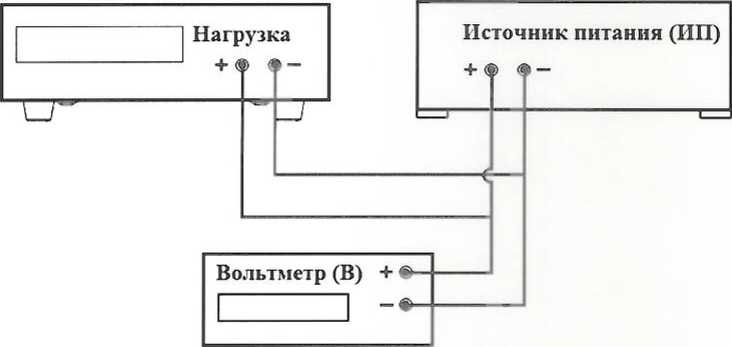 2 На источнике питания устанавливают значение напряжения на выходе, равное верхнему значению предела напряжения на нагрузке. Для получения необходимого значения напряжения на выходе источника питания допускается брать несколько источников питания, соединяя их последовательно (для увеличения выходного напряжения) в соответствии с их руководством по эксплуатации.