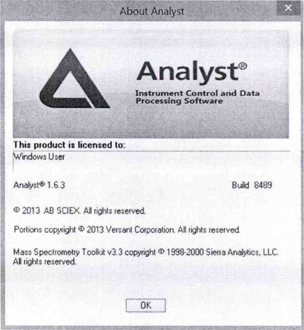 Идентификационные данные ПО (наименование и номер версии ПО. Рис.2) располагаются по следующему пути Help - > About Analyst.. Цифровой идентификатор программного обеспечения (контрольная сумма исполняемого файла Analyst.exe) вычисляется по алгоритму MD5.