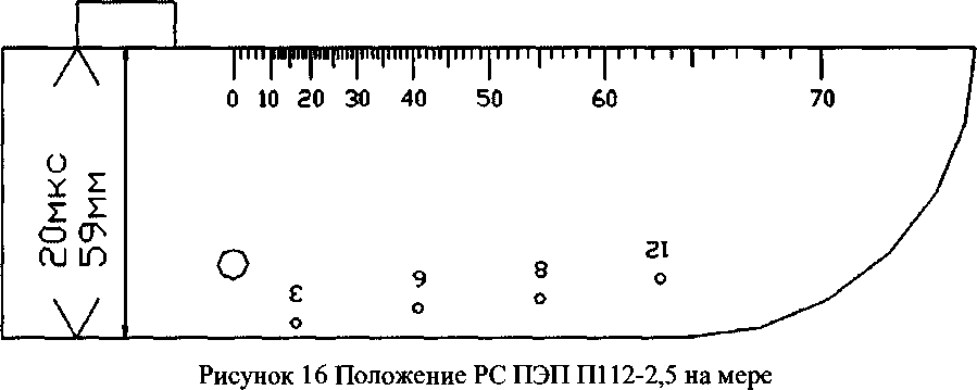 глубины залегания дефектов при работе с прямыми ПЭП для каналов ручного контроля