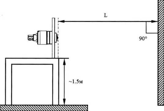 7.4.1.2 При поверке с демонтажем уровнемера в качестве имитатора уровня продукта используют ровную поверхность стены (экрана), в которую направляют антенну уровнемера (см. рис. 1). Плоскость стены (экрана) должна быть строго перпендикулярна оси антенны (допуск не более ±1 °). Угол между плоскостью стены (экрана) и осью антенны контролируется при помощи угломера с нониусом. Минимальное расстояние между осью антенны уровнемера и краем стены (экрана) должно быть не менее 0,5 м. Расстояние между осью антенны уровнемера и различными препятствиями (металлическими предметами, железобетонными конструкциями и т.п.) должно составлять не менее 2 м.