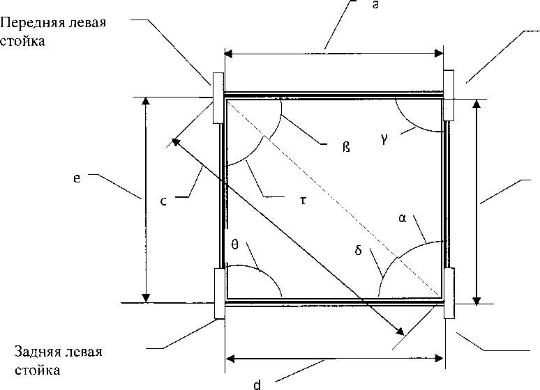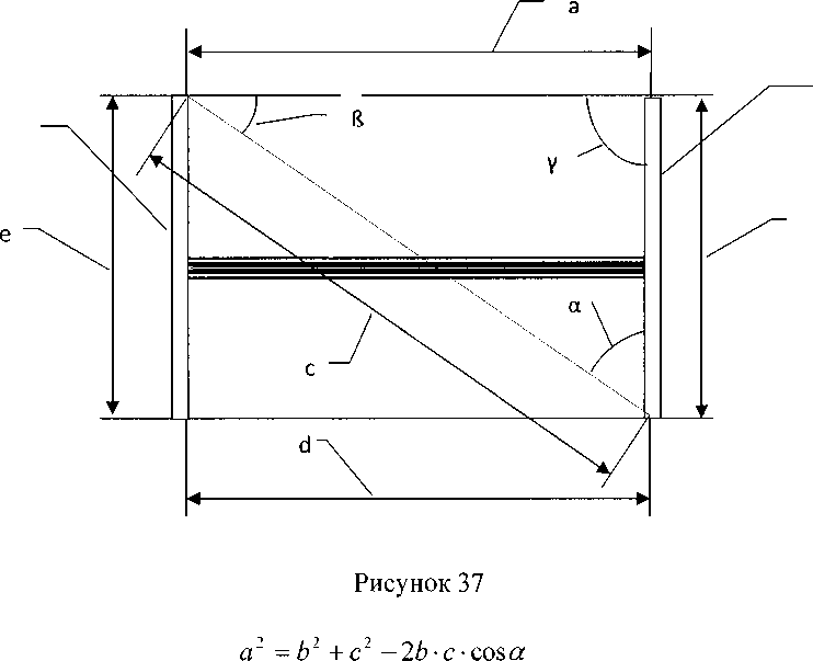 Расчет для треугольника со сторонами: передняя ось - правая продольная балка - диагональная балка. | |