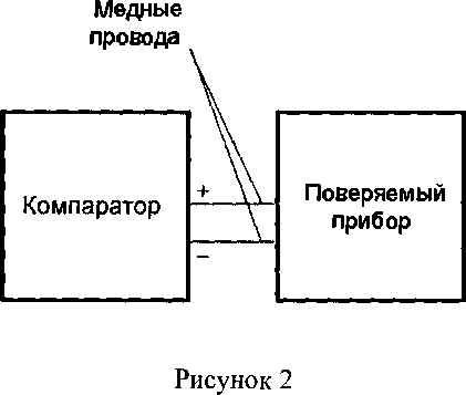 б) Подключают медные провода к компаратору напряжений или калибратору.