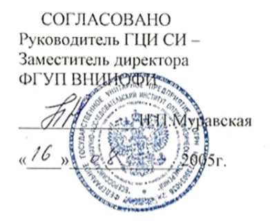 Поверено в соответствии с Приложением 1 к Руководству по эксплуатации, согласованным с ФГУП ВНИИОФИ в 2005г. | |||