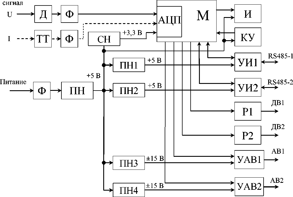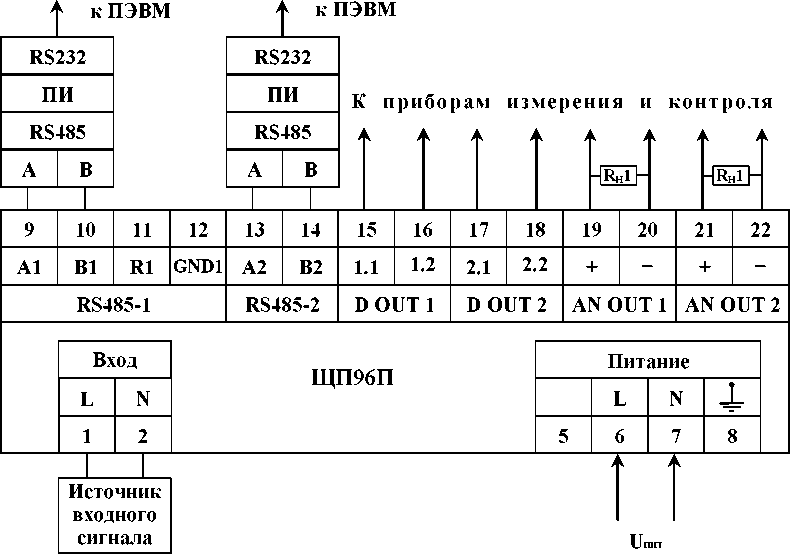 1.1.1 Приборы предназначены для измерения и преобразования действующего значения силы тока, напряжения и частоты в однофазных электрических сетях и других цепях переменного тока в выходные унифицированные сигналы постоянного тока и передачи измеренных значений через последовательный цифровой интерфейс RS485. Приборы могут применяться в трехфазных электрических сетях для измерения и преобразования параметров одной фазы.
