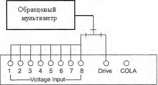7.3.13. Для поверки каналов с зарядовыми входами сигнал выходного канала Drive подается на входы каналов через конденсатор емкостью 1000 пФ ±5%. Подключение к входным каналам производится последовательно. У контроллеров VT-9002, VT-9008, VT-9008L разъемы каналов с зарядовыми входами располагаются в нижнем ряду. У контрол-контроллера VT-9008H разъемы зарядовых входов и входов по напряжению совмещены, определение типа входного сигнала производится программным путем.