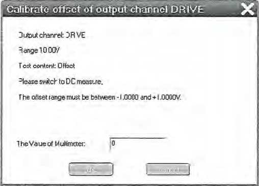 7.3.9. Установить режим вольтметра для измерений постоянного напряжения (DC V). Для подтверждения постоянного смещения канала COLA ввести измеренное значение в соответствующее поле окна программы. Подтвердить ввод нажатием кнопки Ок.