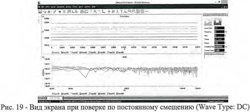 Рис. 20 - Вид экрана при поверке по синусоидальному сигналу (Wave Type: Sine).